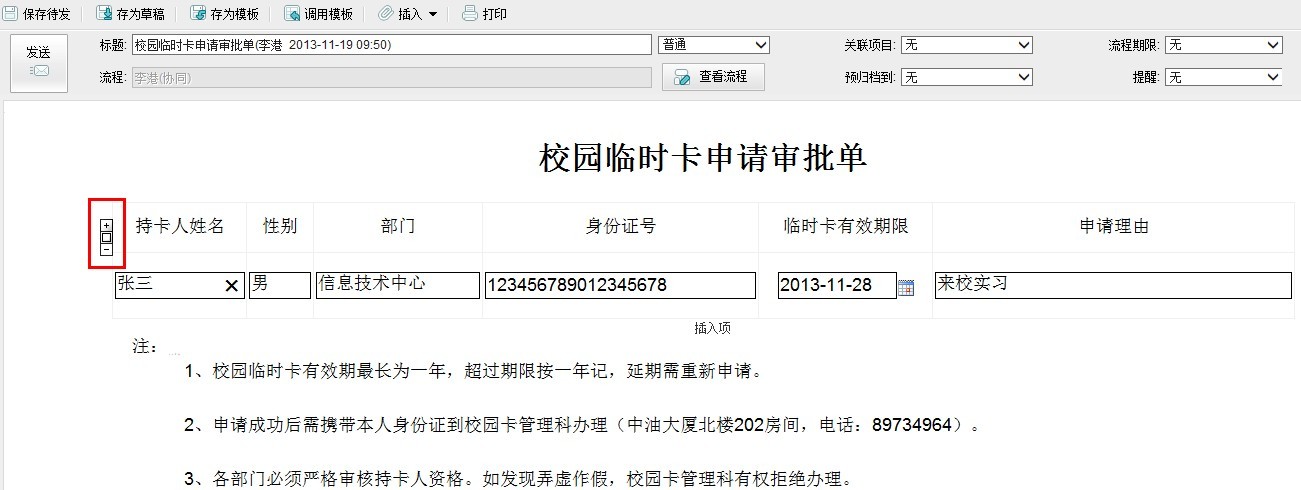 d、 待申请单审批结束返回后,可通知申请人员携带本人身份证前往校园卡管理科(中油大厦202房间)办理